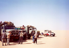 Poco dopo l'albero del Tenerè incrociamo una carovana di camion diretti verso la Libia, attraversando necessariamente il Tenerè. Ci